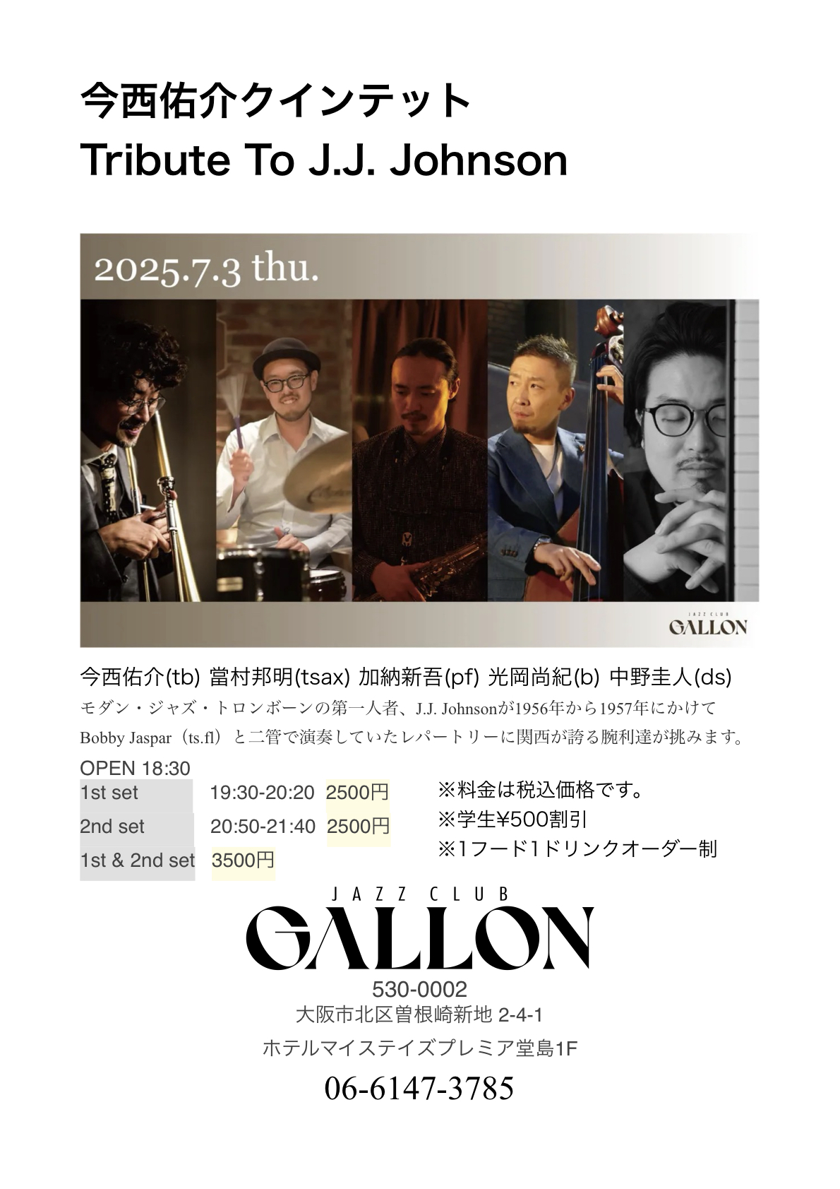 前回大阪ガロンで大盛況だったJ.J.Johnson Tribute Bandですが、第二回目のライブが近づいて参りました。