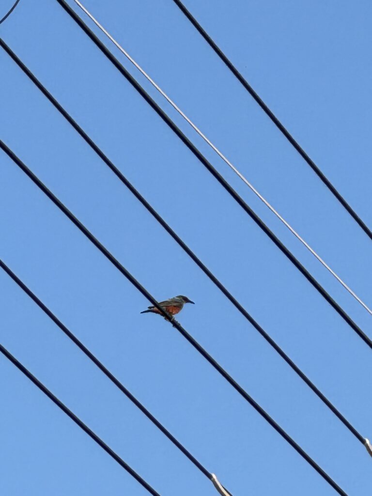 昔、山登りを良くしてた頃に鳥にも少し興味を持った時期があって家の近くで鳥が鳴いてたら今でも何の鳥かな〜って気になったりします。 オスは写真の通りお腹がオレンジ色なんですけど、メスは全身灰色なんですよね。 イソヒヨドリは家の前でもたま〜に見かけるんですが、なかなか上手く写真に撮られてくれません。この写真はお気に入りで携帯の待ち受けにしています。