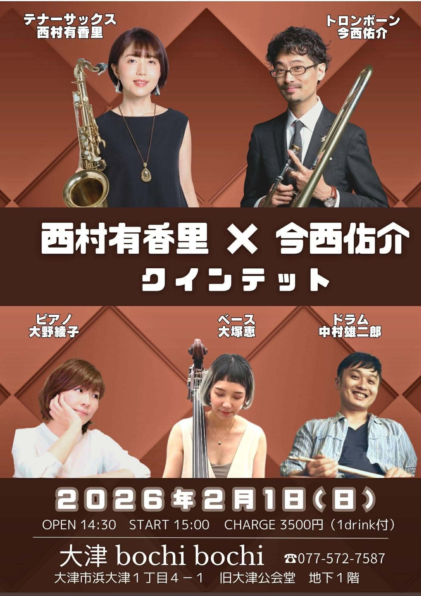中山雄貴(トロンボーン)、今西佑介(トロンボーン)、柳原由佳(ピアノ)、畠山令(ベース)、斎藤洋平(ドラムス)